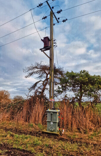 Specialised installation of three-phase overhead connections for properties with high power requirements, ensuring balanced load distribution.